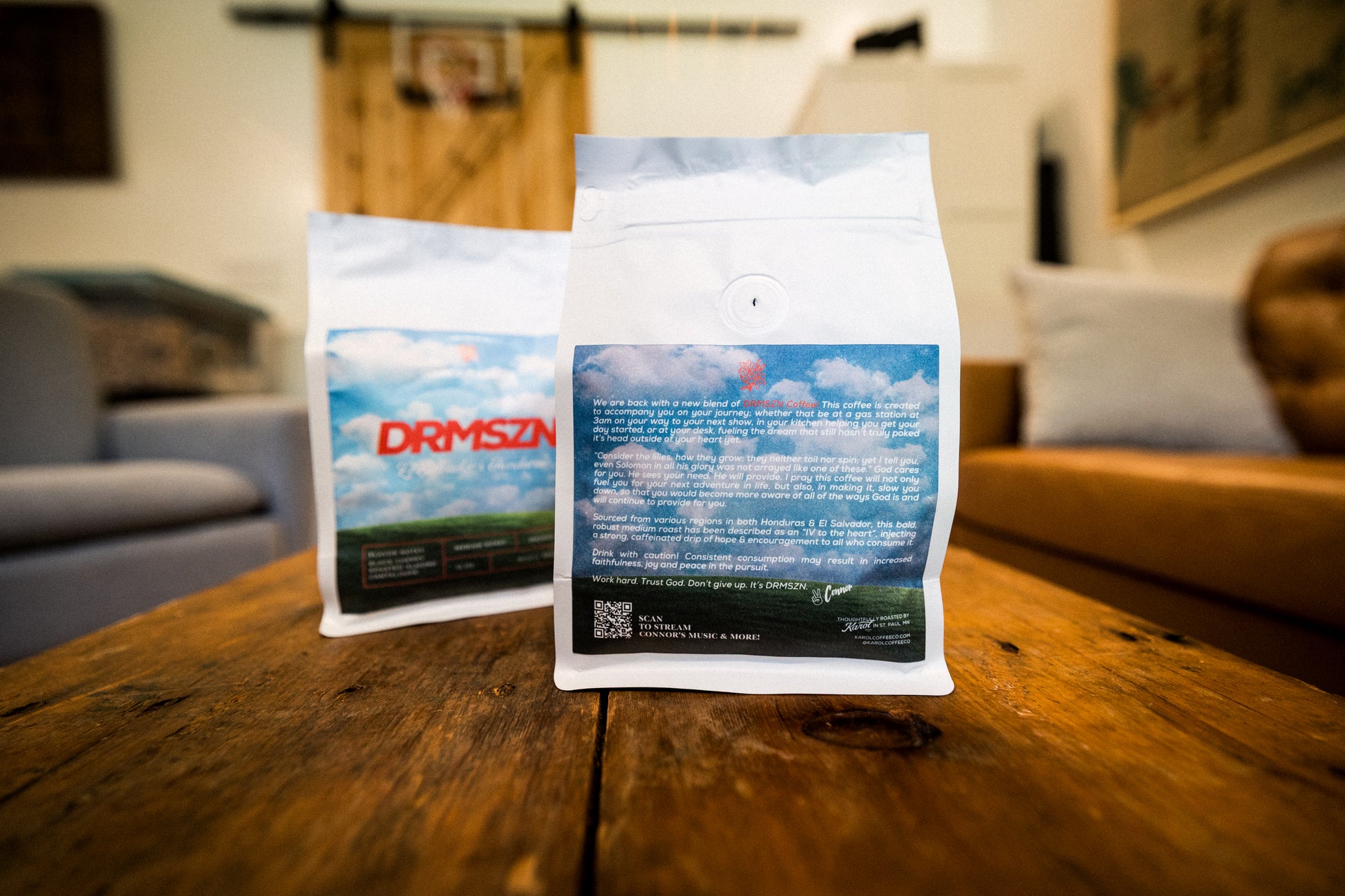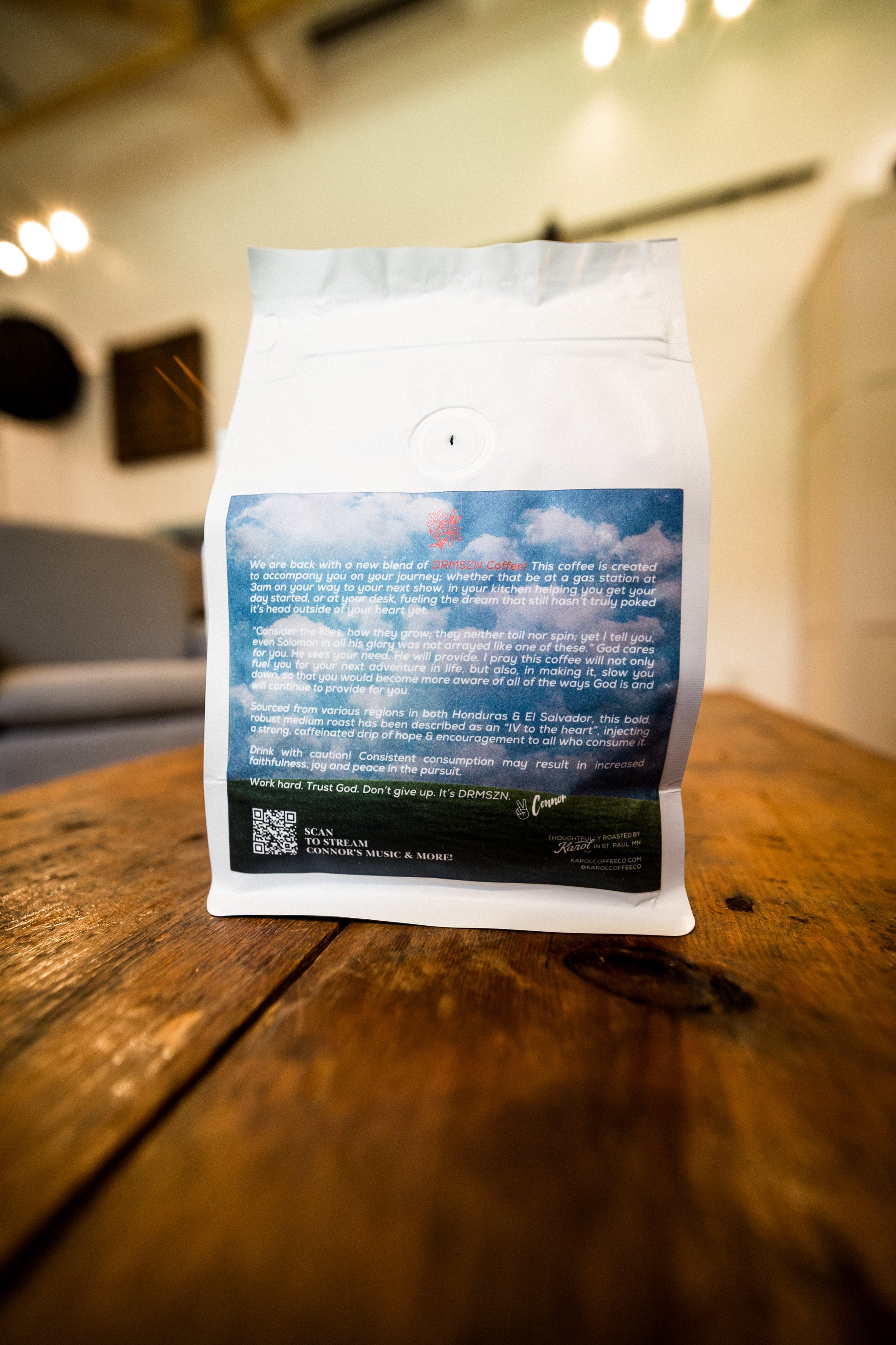 We are back with a new blend of DRMSZN Coffee! This coffee is created to accompany you on your journey; whether that be at a gas station at 3am on your way to your next show, in your kitchen helping you get your day started, or at your desk, fueling the dream that still hasn’t truly poked it’s head outside of your heart yet.