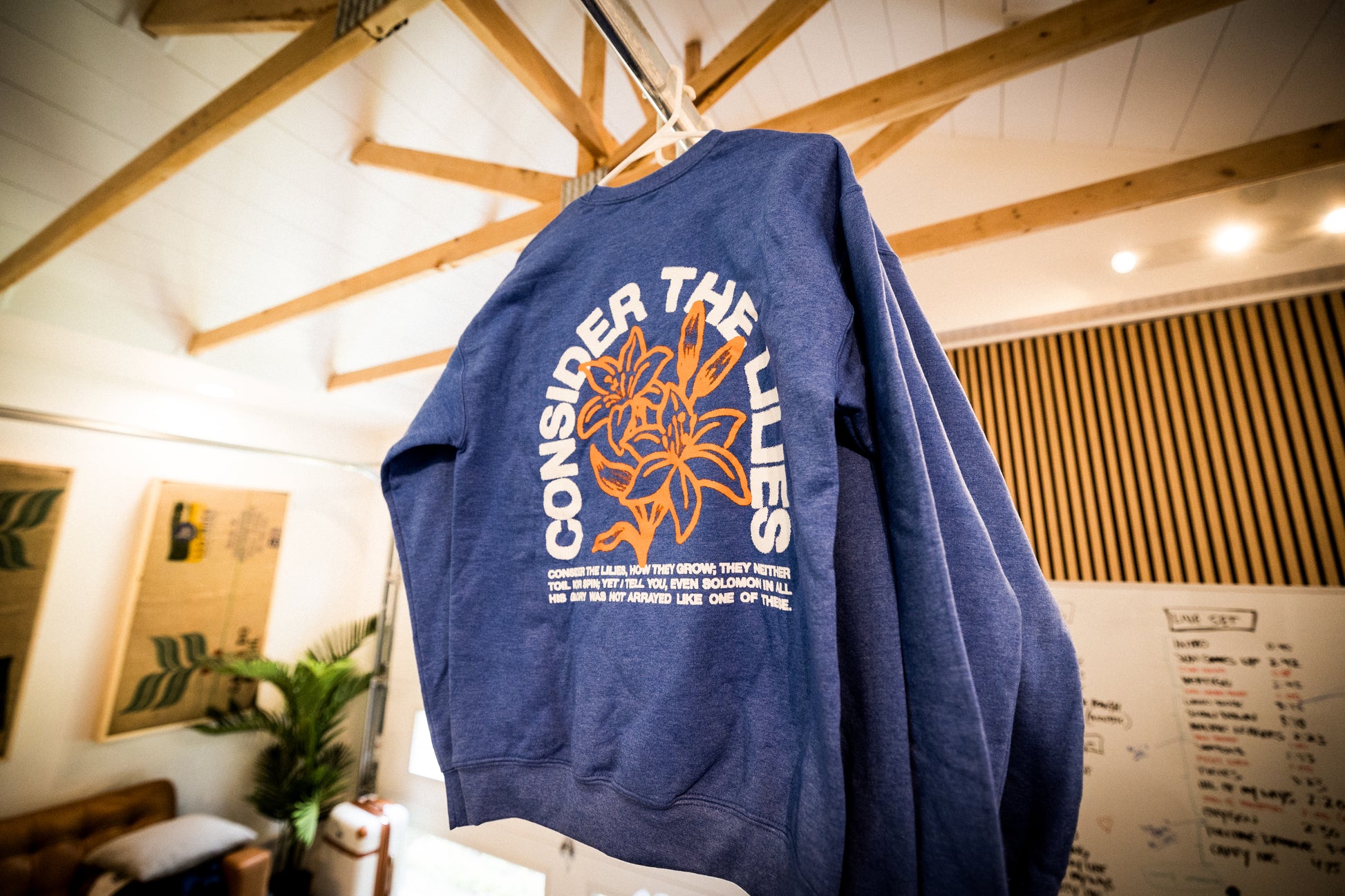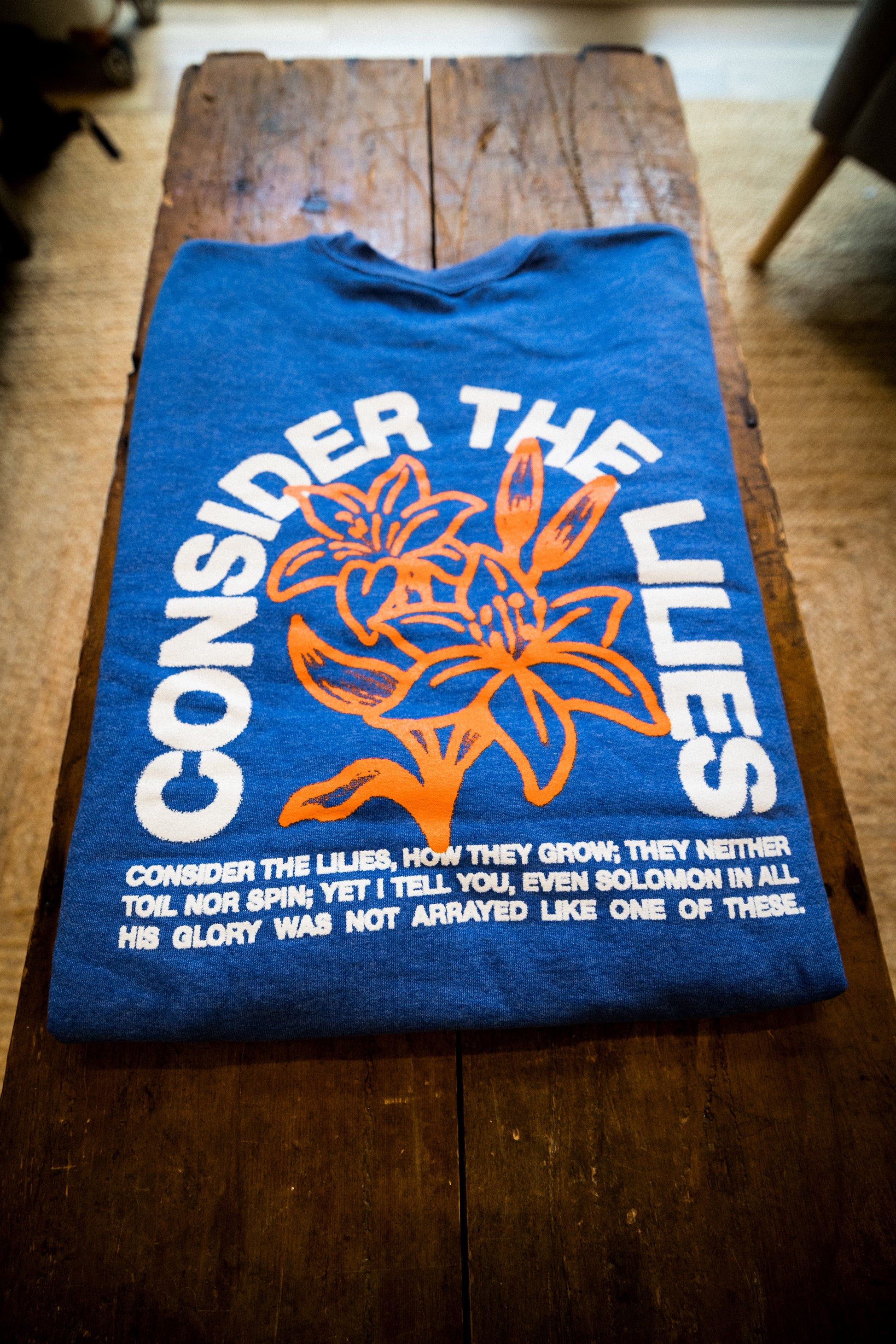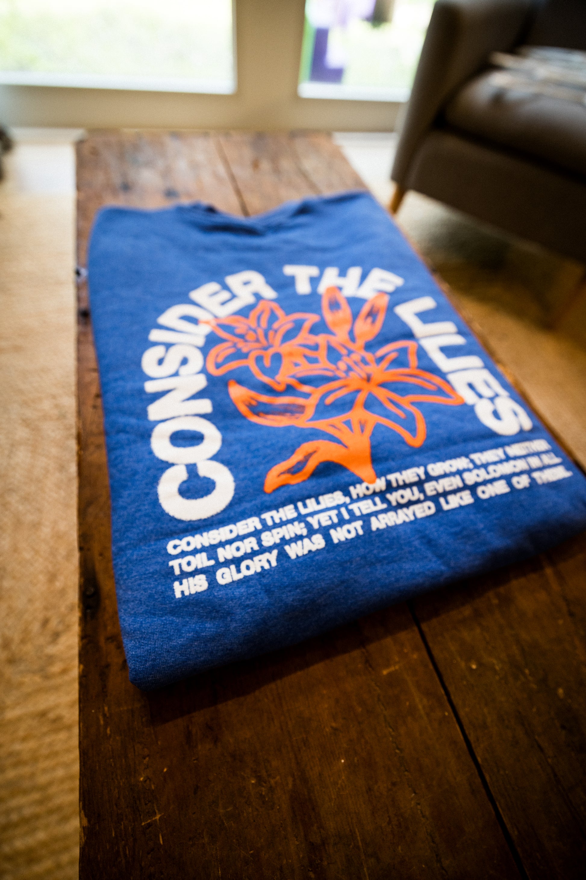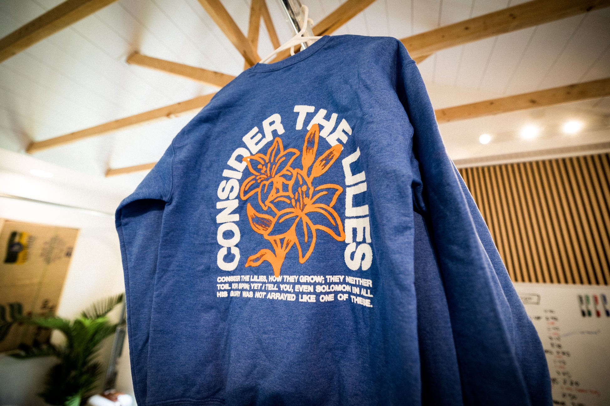 Carry the truth of the Gospel with you wherever you go with our Lilies Crewneck, featuring the timeless wisdom of Matthew 6:28-29: "Consider the lilies of the field, how they grow: they neither toil nor spin; and yet I say to you that even Solomon in all his glory was not arrayed like one of these."