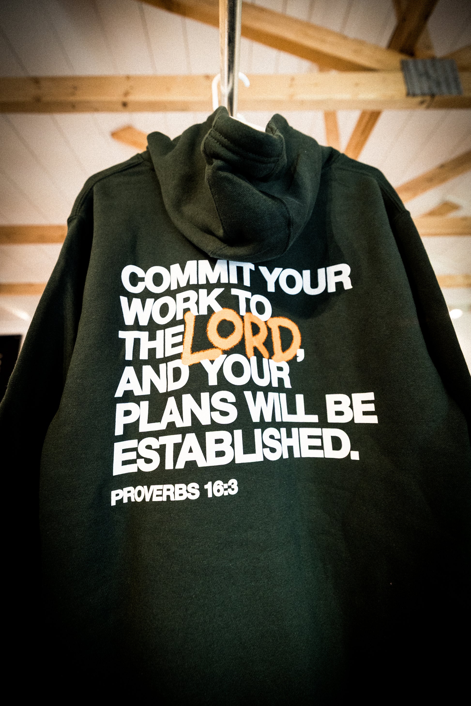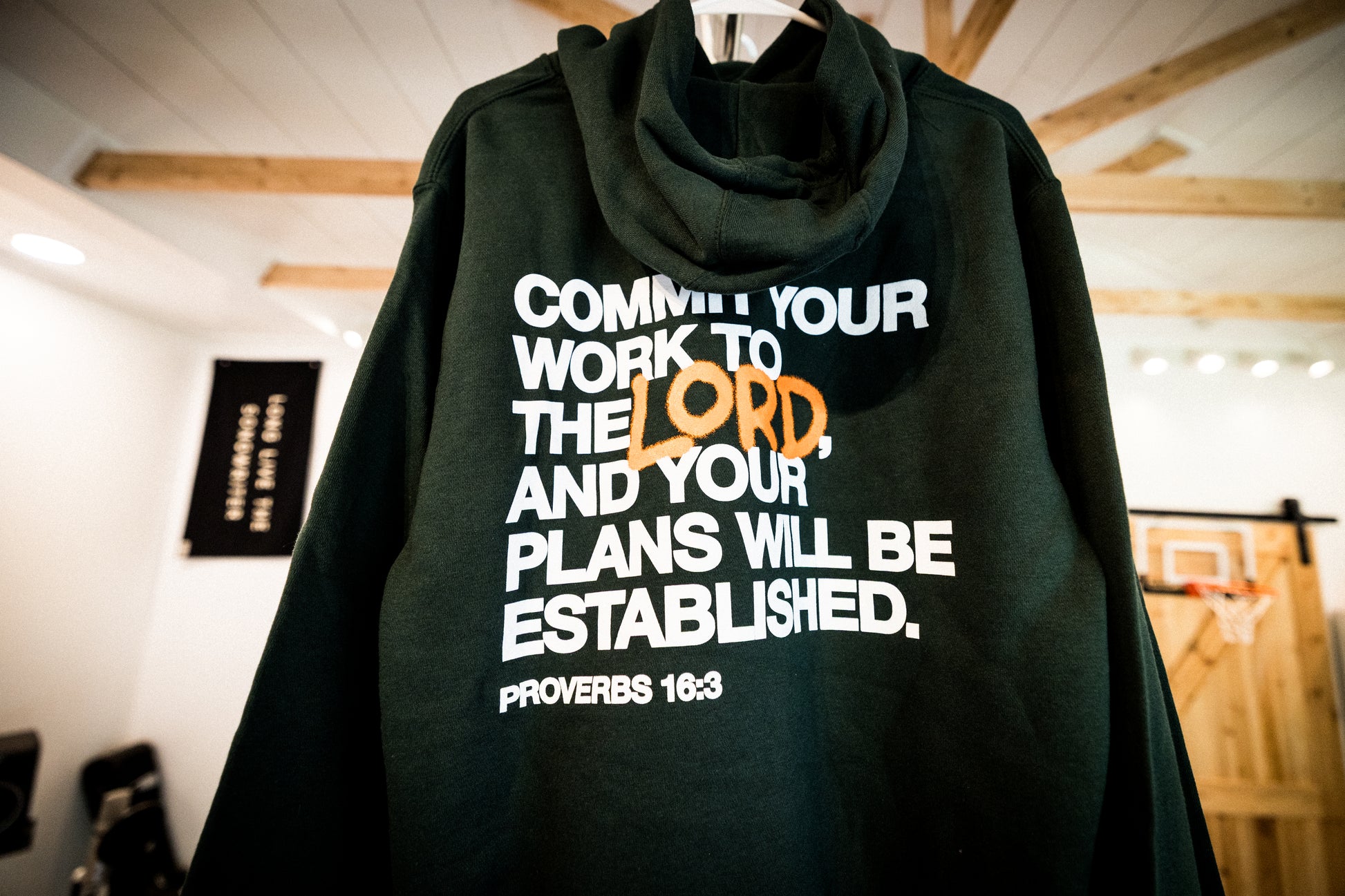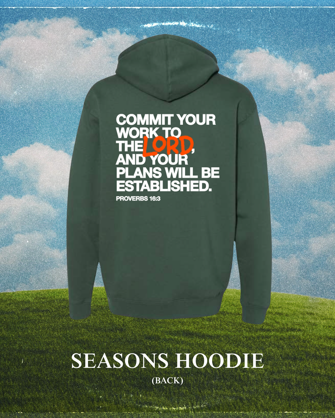 Our signature SEASONS hoodie features your favorite album name boldly displayed on the front, with the powerful reminder of Proverbs 16:3 on the back: "Commit your work to the Lord and your plans will be established."