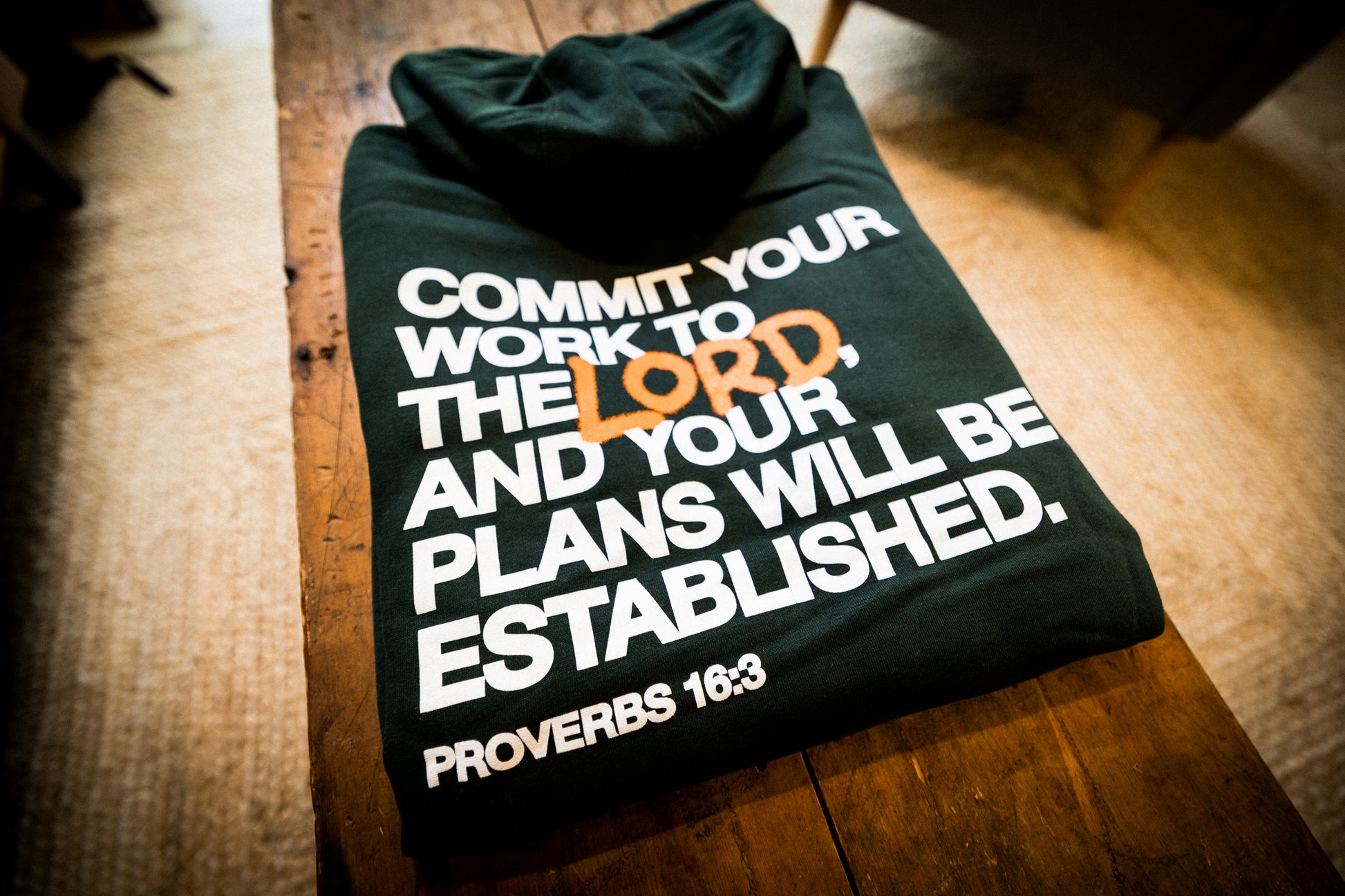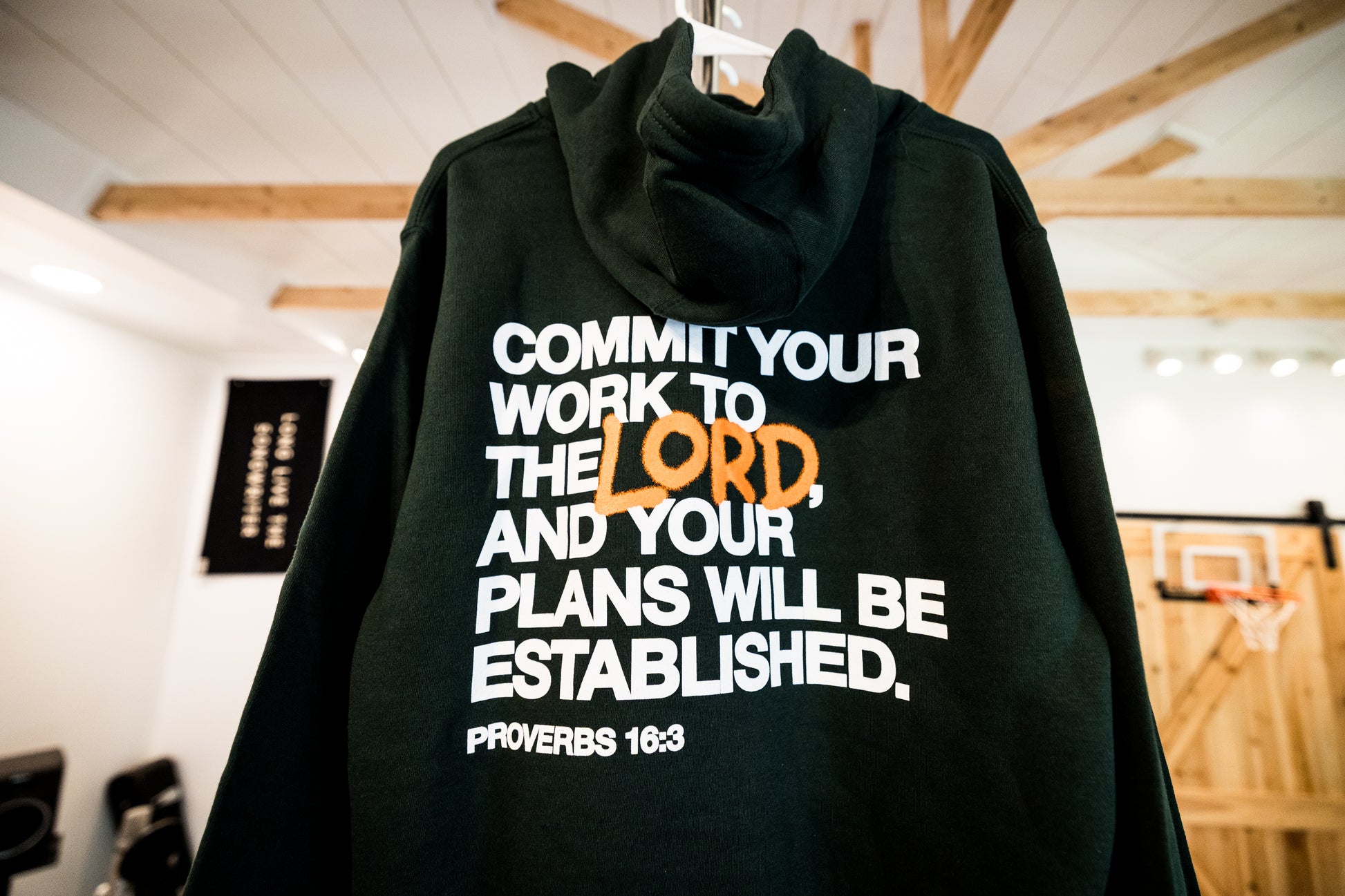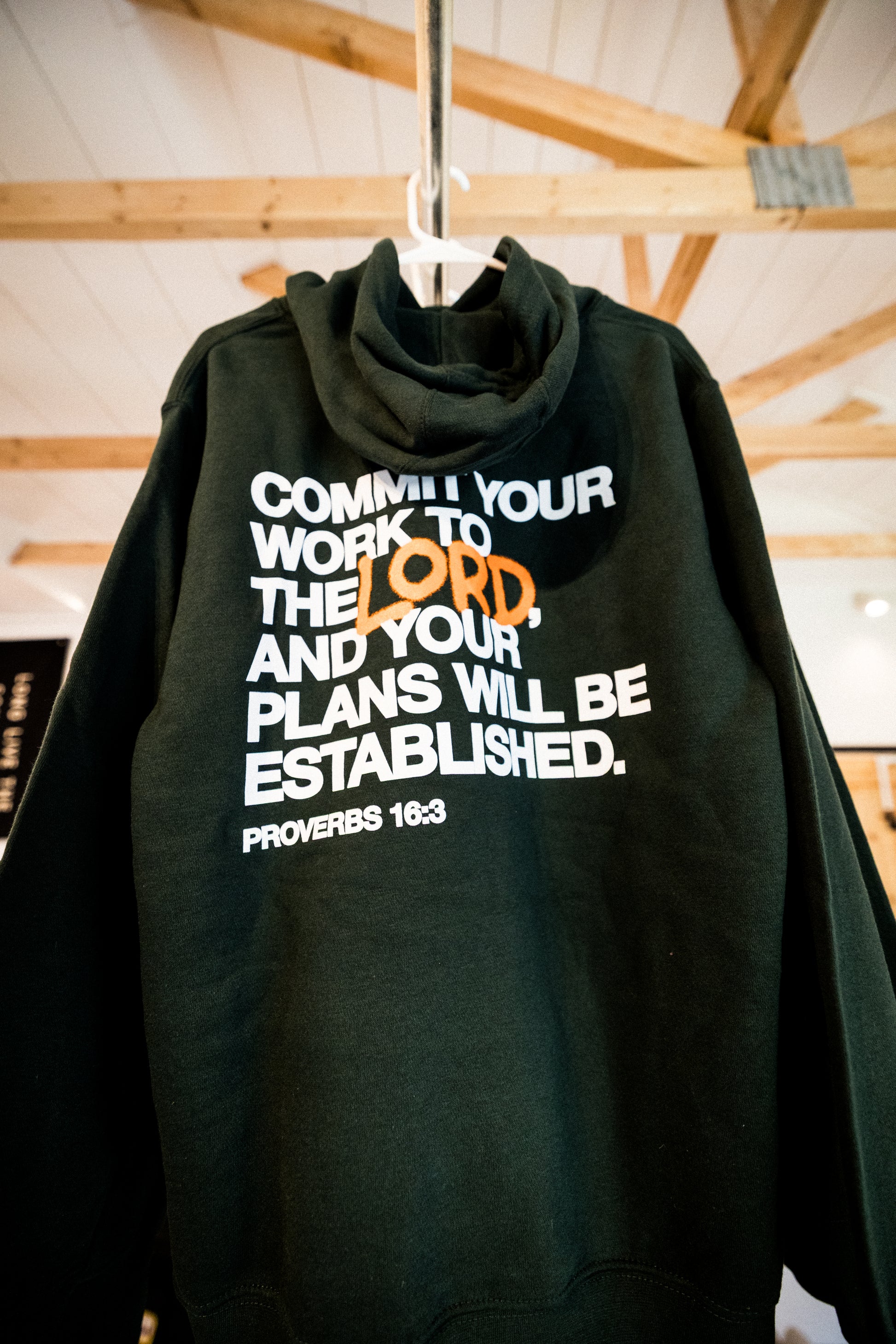 Our signature SEASONS hoodie features your favorite album name boldly displayed on the front, with the powerful reminder of Proverbs 16:3 on the back: "Commit your work to the Lord and your plans will be established."